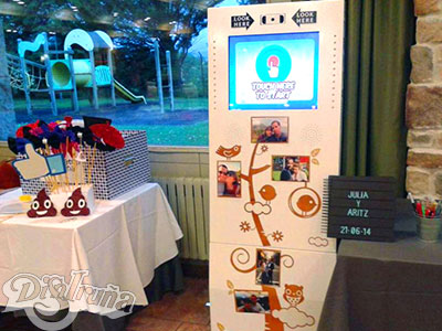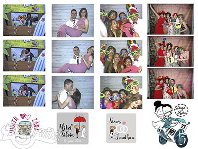 Nos encargamos de montar el espacio fotomatón y guiar a la gente para que no te tengas que preocupar de nada. El fotomatón es abierto, sin cabina. Incluye fotos en papel, en la nube para descargar y en USB, un logo, el álbum, portafotos, atrezzo…