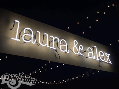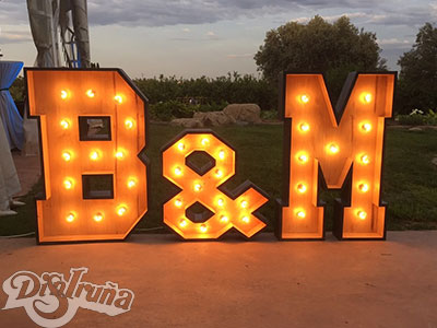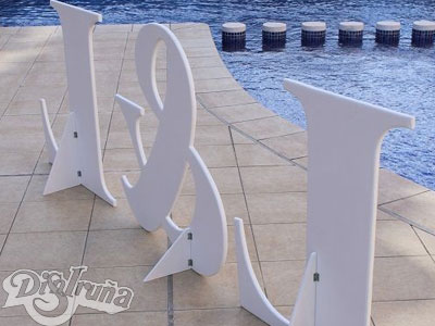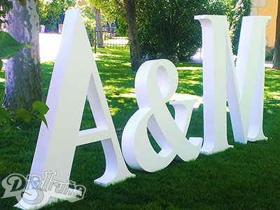Decoración con letras en porexpan, metal, madera o neón. En distintos tamaños para el jardín, salón o sobre las mesas. Las fotos nocturnas más especiales con la opción de letras iluminadas.